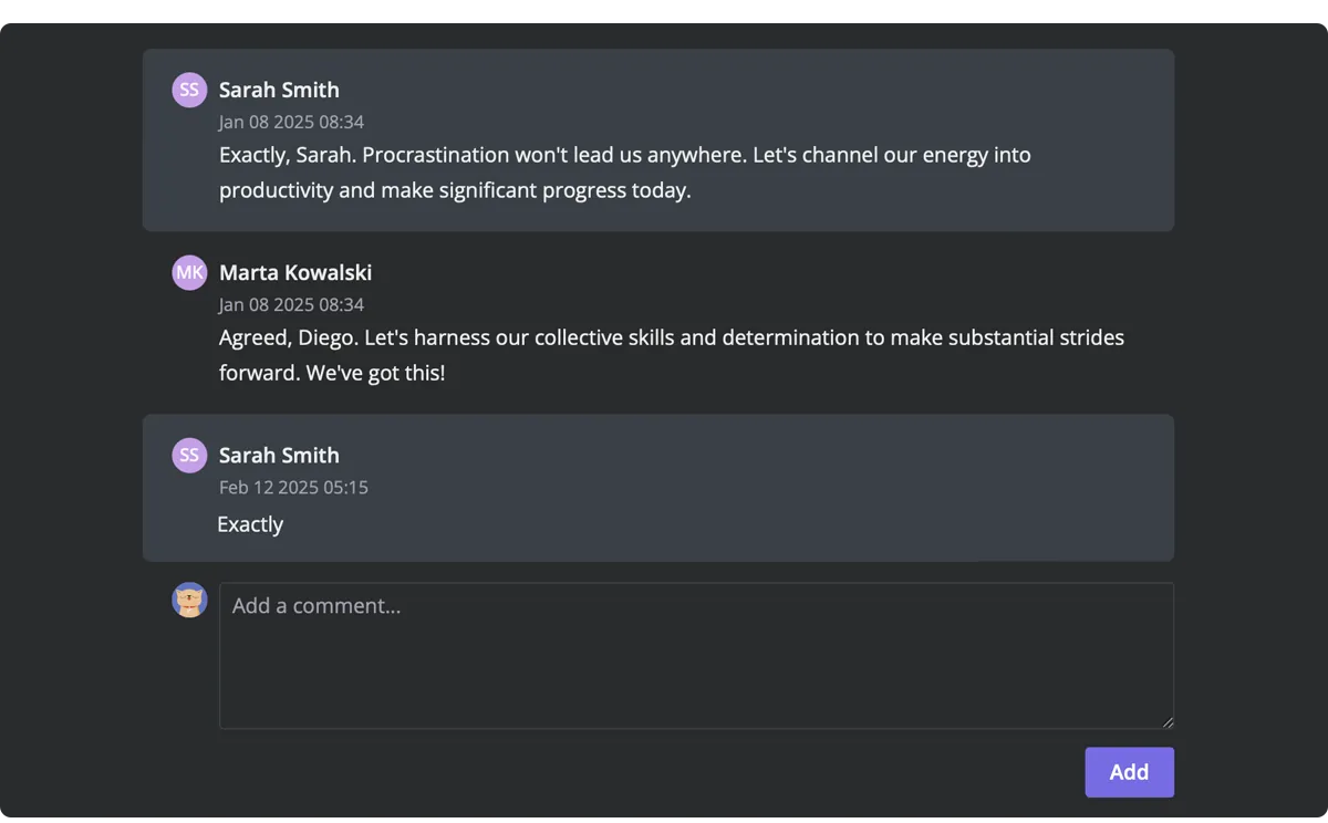 If you need to add a comments section to your app, our Svelte Comments component lets you do it in minutes. It offers bubbles or flow views, supports markdown content, and provides a simple interface to add, edit, or delete comments. Both light and dark skins are available.